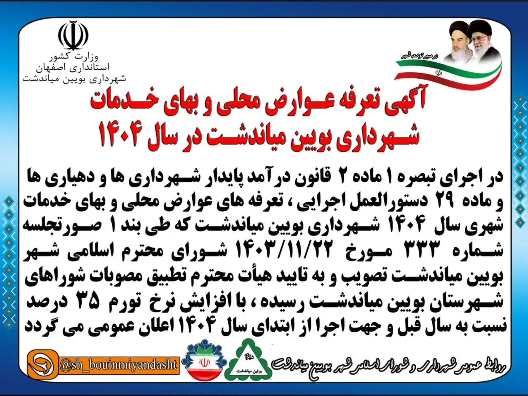 تبصره۲) (اصلاحی۲۷/۱۱/۱۳۴۵) احداث تاسیسات تولید و توزیع برق و تعیین نرخ آن در شهرها تا موقعی که وزارت آب و برق نیروی آنرا تامین نکرده است با موافقت قبلی وزارت آب و برق به عهده شهرداری است. تهیه آب مشروب شهرها و تأمین وسائل توزیع و وضع مقررات مربوط به آن و همچنین تعیین نرخ آب در شهرها به استثنای مواردی که سازمانهای تابعه وزارت آب و برق عهده دار آن هستند با تصویب انجمن شهر به عهده شهرداری خواهد بود. این قبیل شهرداریها می تواند با تصویب انجمن شهر تأیید وزارت کشور تهیه آب مشروب و توزیع آنرا به مؤسساتی که طبق اصول بهداشتی عمل نمایند واگذار کنند.